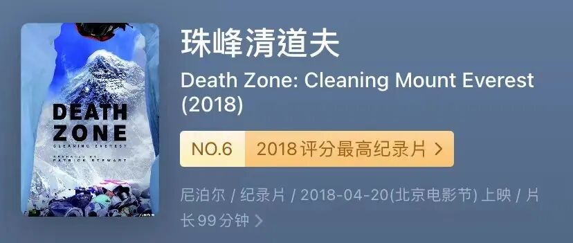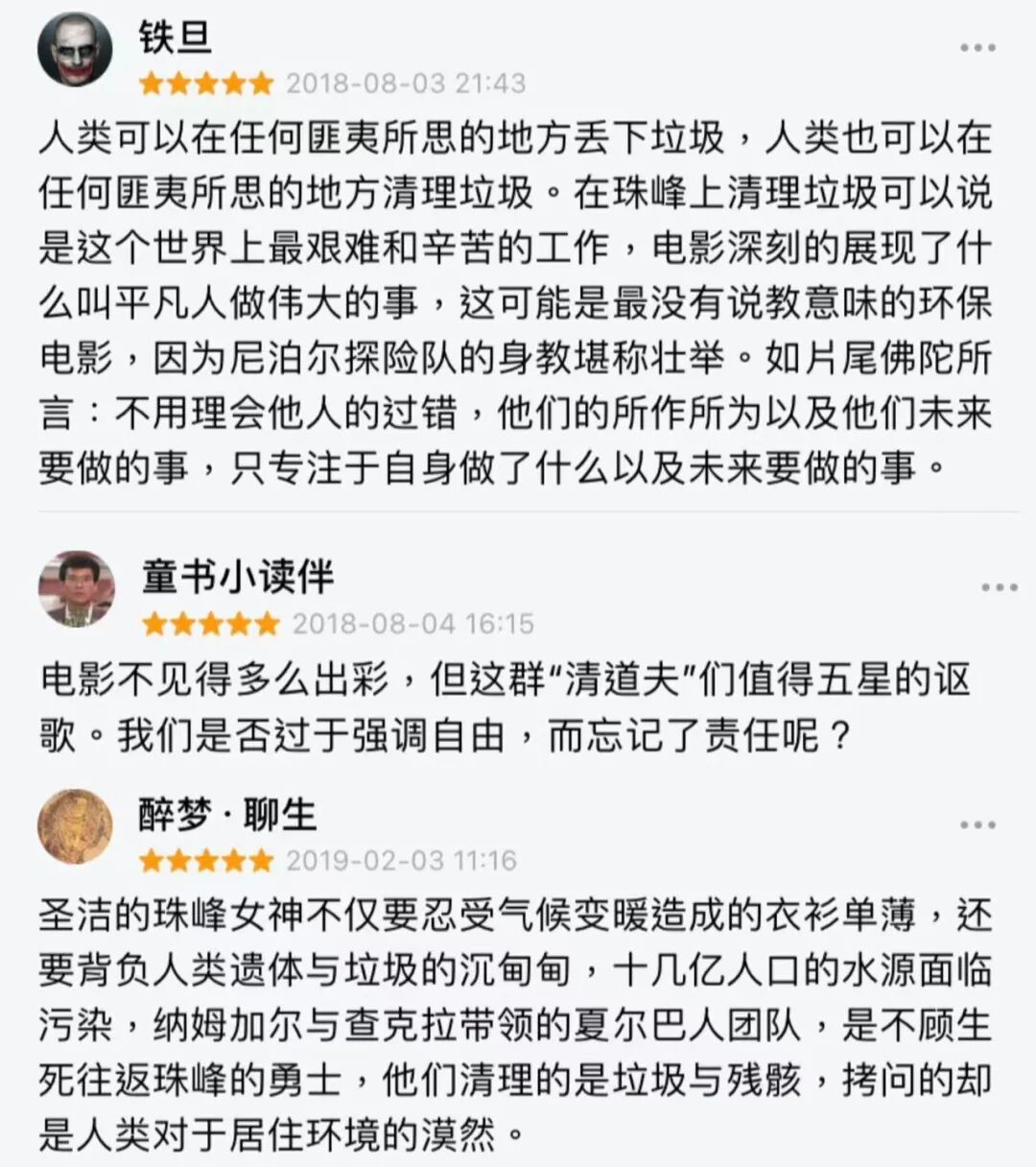 豆瓣网友对《珠峰清道夫》的评价 来源:豆瓣电影