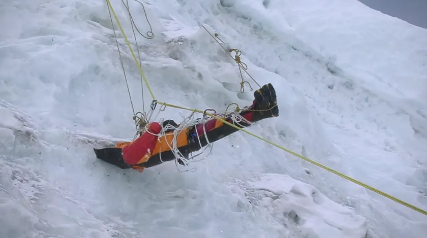 只有队长还在坚持,他决意要将遗体带回去。在海拔7500米的高山上,他独自一人沿着一条被冰封的小路向上攀登。