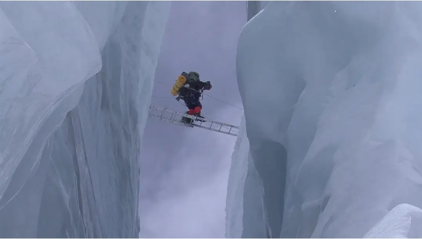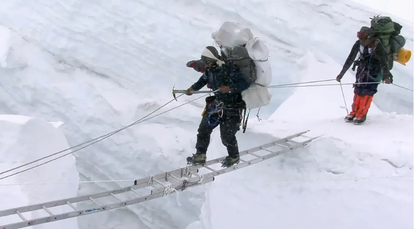 如果仅靠人力将遗体从珠峰峰顶运输到南坡大本营,需通过昆布冰川,难度和风险将成倍增加。