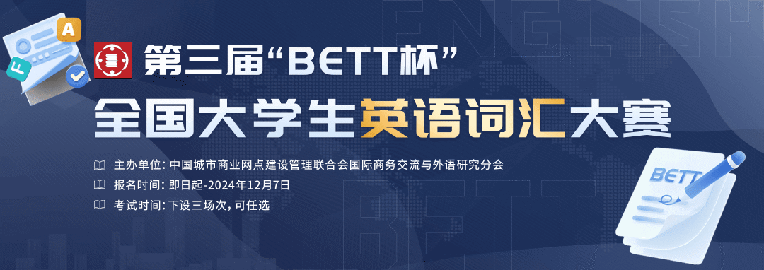 据悉,“BETT杯”赛事由中国城市商业网点建设管理联合会国际商务交流与外语研究分会主办,属于国家一级协会主办单位。“BETT杯”系列赛事包括全国外语语言应用大赛、全国大学生英语阅读大赛、英语词汇大赛和英语写作大赛等,赛事覆盖多个语种。参赛对象包括全国高等院校在校生、各企事业单位在职人员。