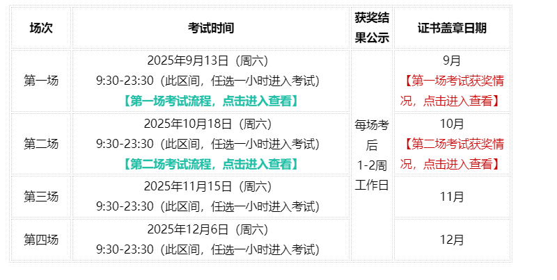 注意:每个月均会设有考试场次,对应月份代表获得对应月份证书,但每人仅可报名一次参加其中一次考试。
