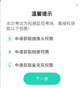 2、考试采用设备自带摄像头进行监考(单机位),请考生务必使用摄像头状态良好的设备进行考试